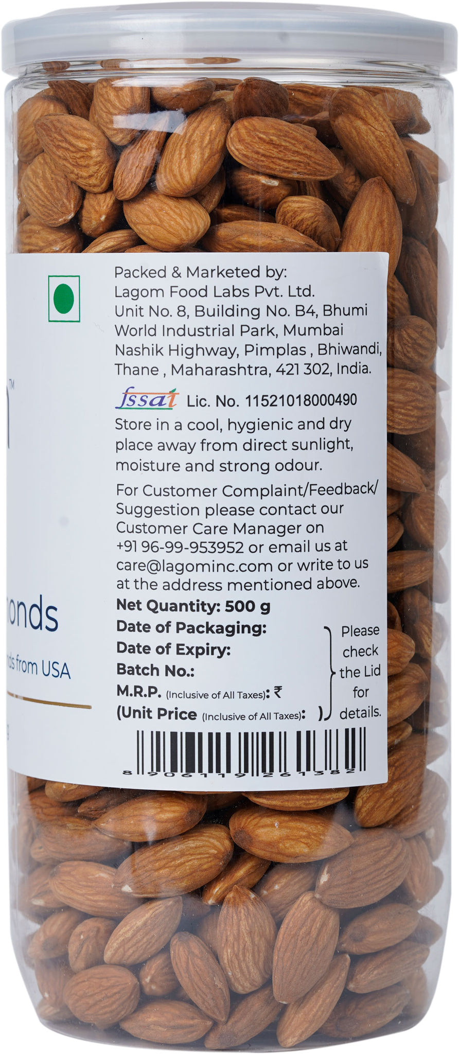 Seasonally sourced from only the best farms in California, USA, Lagom almonds are handpicked and taken straight to the processing unit. Maintained in a temperature-controlled environment, we select the best almonds and pack them in an airtight nitrogen-flushed PET jar so that when you open the pack, they are as good as new. Packaging is an incredibly important part of the whole process, and that is why we take special precautions to make sure we follow all the standard industry regulations.